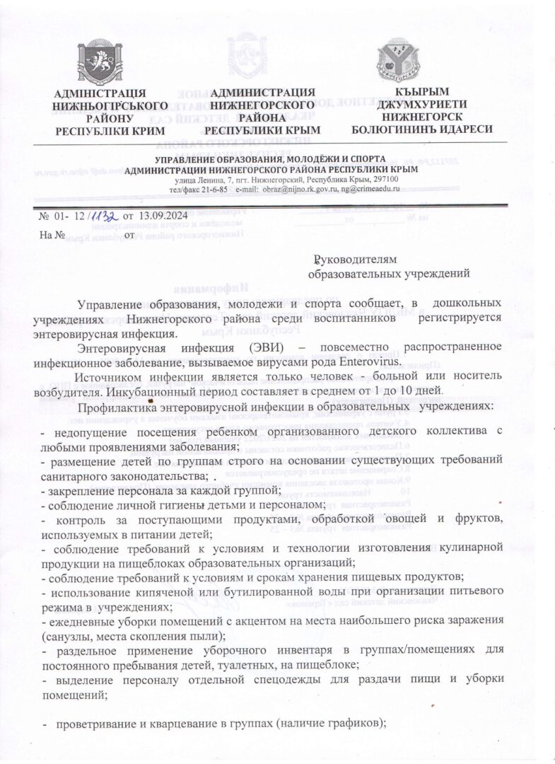 МБОУ «Нижнегорская ШГ» с целью предупреждения и возникновения ОРВИ: